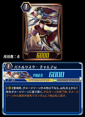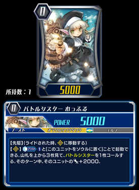 [R]: [C-Blast (1)] & [Put this unit into your soul], look at three cards from the top of your deck, call a Battle Sister from among them. That unit gets [Power] +2000 until end of turn.