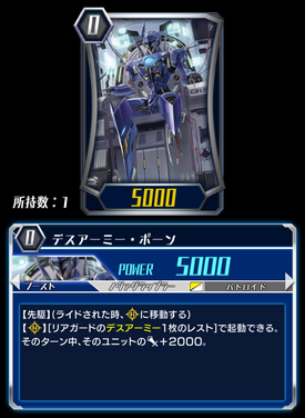[V]: [Rest two Death Army rear-guards], this unit gets [Power] +5000 until end of turn.