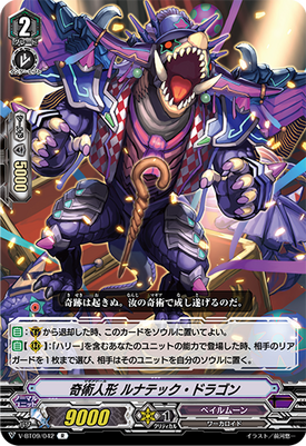AUTO [V]: When it attacks, COST[S-Blast (3) - grade 3], retire all of your and your opponent's rear-guards, if your drop zone has fifteen or more cards, call five cards from your drop zone to [R], and all of your units get [Power] +10000 until end of turn.