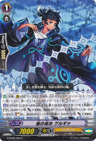 AUTO [R]: When this unit boosts a grade 3 or greater vanguard with "Krysrain" in its card name, if you have four or more units with different card names, COST[E-Blast (3)], and until end of that battle, when your opponent would call cards without Sentinel from hand to [G], they must call three or more cards with different grades at the same time.