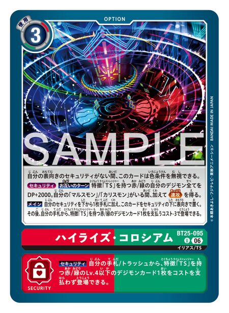 • Main: Add your bottom security card to the hand and place this card face up as the bottom security card. Then, you may play 1 red or green [TS] trait Digimon card from your hand with the cost reduced by 3.