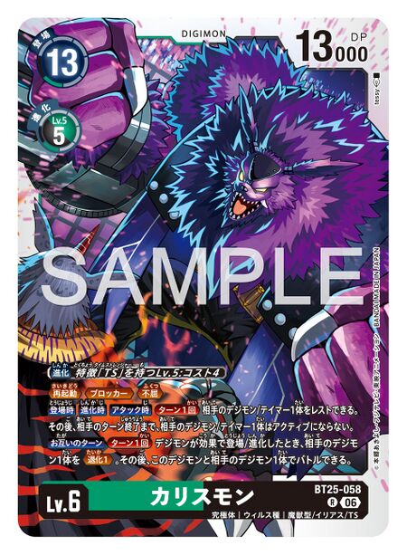 • Security All Turns: All of your red or green Digimon with the [TS] trait get +2000 DP. While you have [Marsmon] or [Callismon], they also gain Rush.