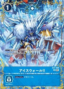 • Barrier (When this Digimon would be deleted in battle, by trashing your top security card, it isn't deleted.)