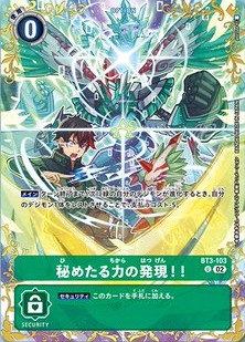 • When this card would be used, by trashing the bottom face-down card from under any of your Tamers, reduce the use cost by 2.