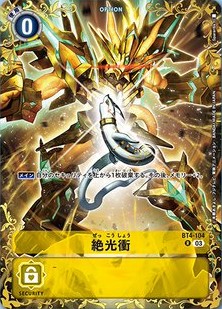 • Digisorption -3 (When one of your Digimon digivolves into this card from your hand, you may suspend 1 Digimon to reduce the memory cost of the digivolution by 3.)