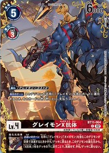 • All Turns: When this Digimon with [Greymon] or [Omnimon] in its name would be deleted or returned to your hand or deck by an effect, by placing 1 [X Antibody] from this Digimon's digivolution cards at the bottom of its owner's deck, prevent this Digimon from leaving play.