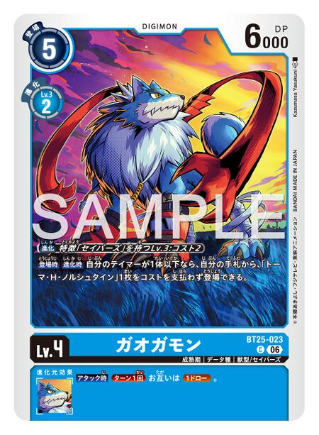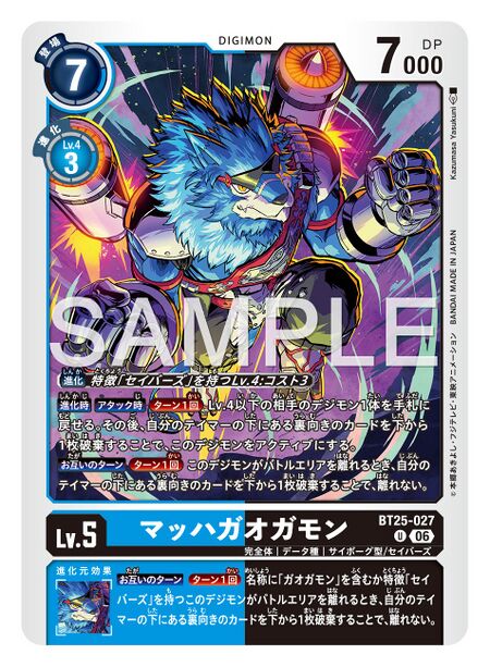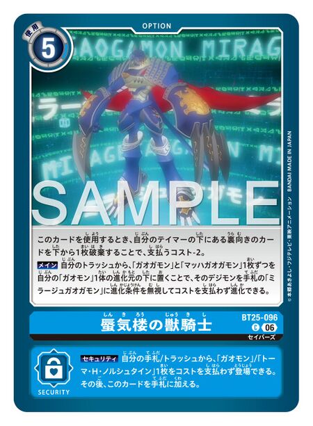 • Main: By placing 1 [Gaogamon] and 1 [MachGaogamon] from your trash as 1 of your [Gaomon]'s bottom digivolution cards, that Digimon may digivolve into [MirageGaogamon] in the hand, ignoring digivolution requirements and without paying the cost.