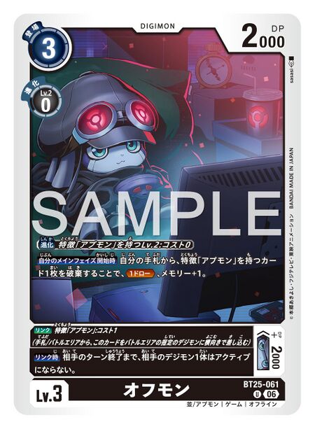 • Digivolve: 0 from Lv.2 with the [Appmon] trait