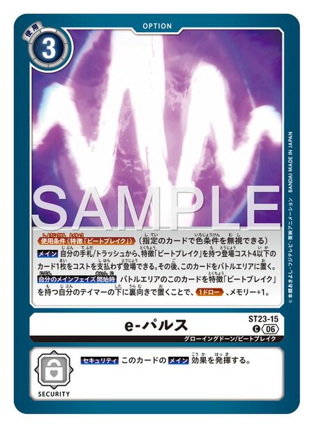 • Start of Your Main Phase: By placing this card from the battle area face down under any of your Tamers with the [BEATBREAK] trait, Draw 1 and Memory +1.